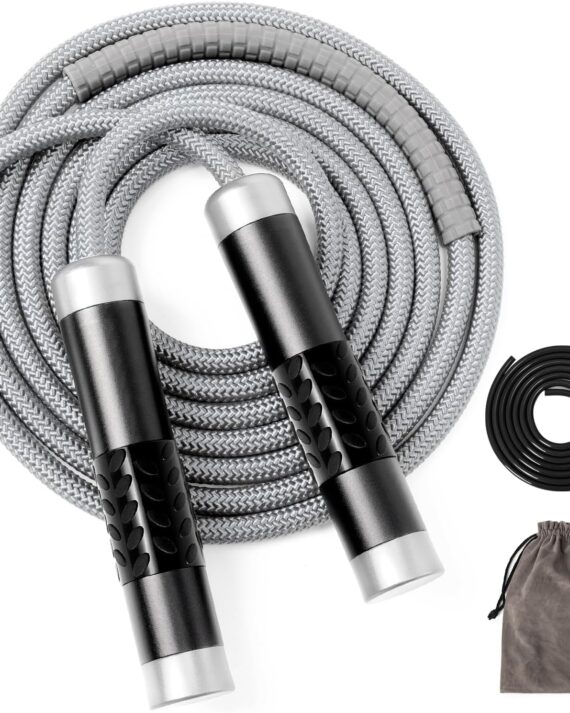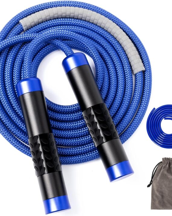 1LB Weighted Jump Ropes for fitness Women Men, Tangle-Free Ball Bearing Rapid Speed Skipping Jump Rope with Adjustable 9mm Cotton & PVC Cord, Aluminum Handles for MMA, Boxing, , Weight-loss Workouts
