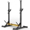 • 【MATERIAL】 adjustable squat rack is made of high quality heavy-duty steel tubing, so it has superb load-bearing capacity. The outer layer of the squat rack is powder-coated for long-lasting use without rusting.
